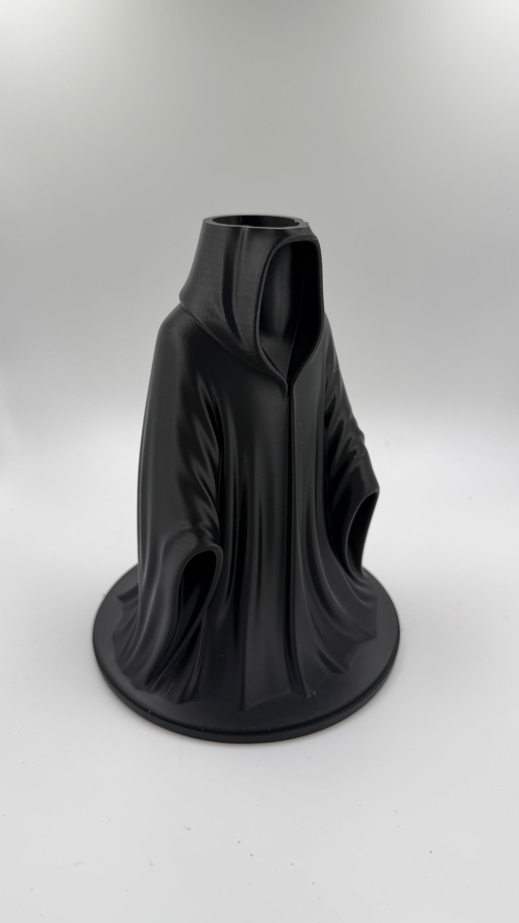 Summon dark elegance into your space with this Wraith-themed Gothic Vase, inspired by the haunting silhouette of a cloaked reaper. Flowing robes, deep shadows, and a faceless void give this piece an ominous yet refined presence—perfect for lovers of gothic décor, dark fantasy, and horror aesthetics.